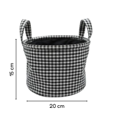 Canasto organizador de tela 20x15 cm cuadrillé blanco y negro