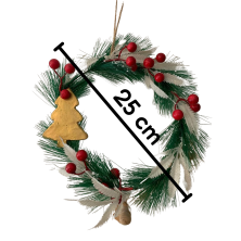 Con un perfecto diámetro de 25 cm, esta corona es versátil y se adapta a cualquier espacio: puertas, paredes, ventanas o incluso como centro de mesa. Su tamaño compacto la hace ideal para decorar tu hogar sin abrumar, pero con un impacto visual que seguro será elogiado por todos.