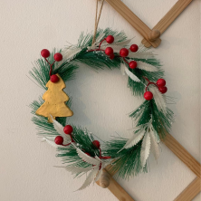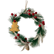 Pero eso no es todo. Nuestra corona navideña va más allá al incorporar sutiles toques de brillos que añaden un toque de resplandor y sofisticación. Estos destellos de luz capturan la esencia del espíritu navideño, creando un ambiente cálido y acogedor en tu hogar.