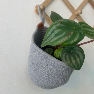 Canasto organizador tejido, práctico y decorativo, ideal para sumar orden a cualquier espacio del hogar. Su diseño moderno en color gris y su asa colgante permiten colocarlo en paredes, ganchos, estantes o dentro de muebles, aprovechando mejor el espacio.