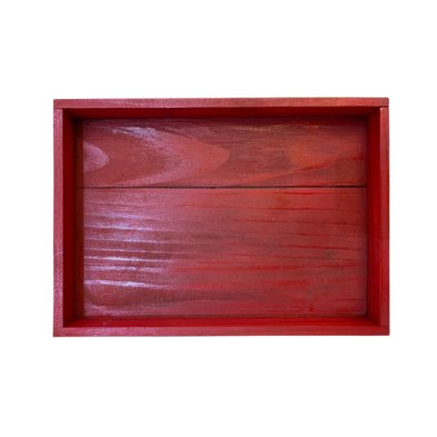 Bandeja decorativa de madera pintada en color rojo Navidad, ideal para sumar un toque festivo y cálido a la decoración del hogar. Su diseño simple y robusto la convierte en una pieza versátil, perfecta tanto para uso decorativo como funcional.