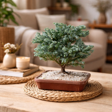Bonsái Juniperus natural de 20 cm. Resistente, decorativo y fácil de cuidar. Ideal para regalar o sumar un toque verde y sereno a cualquier ambiente.