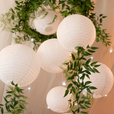 Pantalla de papel en color blanco, ideal para crear una iluminación suave y una ambientación cálida en cualquier espacio.