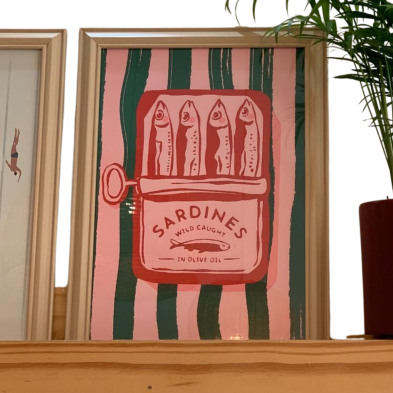 Diseño artístico de sardinas el nata, que aporta aire moderno, divertido y estilo contemporáneo a cualquier ambiente.