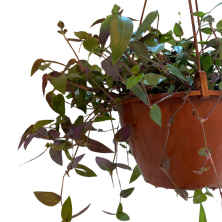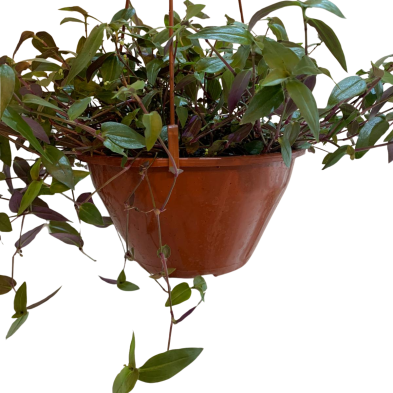 Planta colgante resistente y de fácil cuidado, con crecimiento suelto y natural. Incluye maceta con gancho.